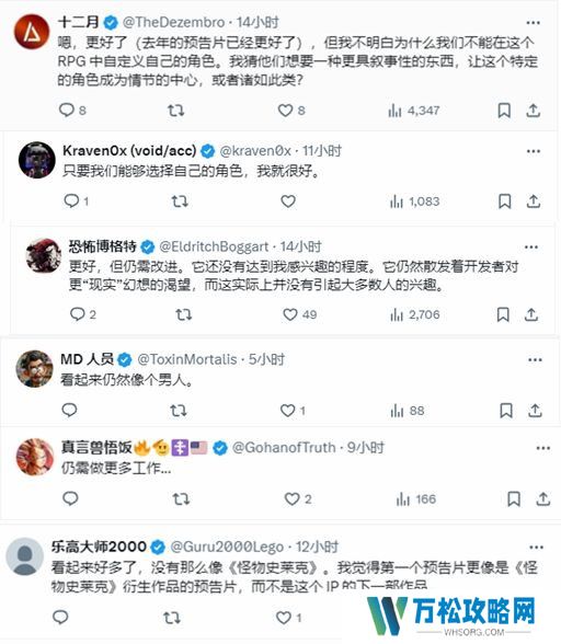 视频一经发布,游戏女主角的外观设计立即引起了玩家社区的广泛讨论。一些网友将新视频中的形象与一年前预告中的形象进行了对比,认为新实机演示中的女主角外观更加“顺眼”,眼睛和表情显得更为自然,特写镜头下的面部细节也更加丰富。然而,尽管有所改进,但整体而言,女主角的形象仍然缺乏足够的吸引力。