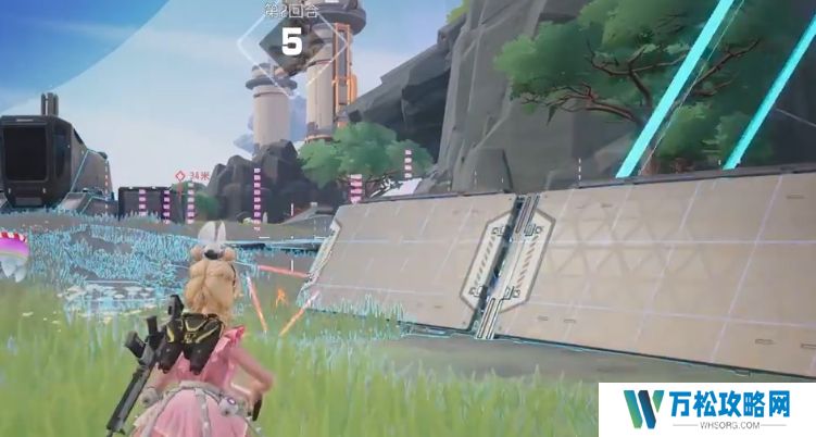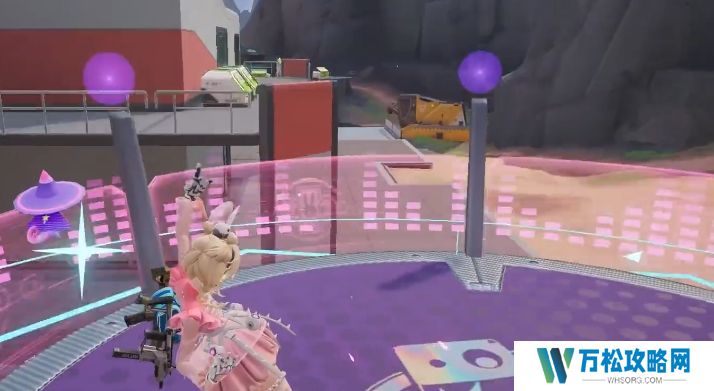 另外使用这个技能的时候还有一个重要的注意事项,那就是她投掷这个音响的时候是没有很大的抛物线衰减效果的,所以即使是远距离使用也是可以的,完全能够当做支援效果来用,如果玩家操作好的话,甚至可以直接压制住敌人的身位,最后要介绍的就是梅歇尔的大招即刻登台,当玩家选定位置后,梅歇尔会升起一个摇滚舞台,我方可在单向屏障的保护下向外射击,环绕音浪更是拥有强大的威力,能够将任何人直接送上舞台。