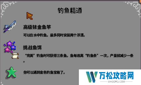 高级铱金鱼竿: 拥有更强大的钓鱼能力,可同时使用两个浮漂。