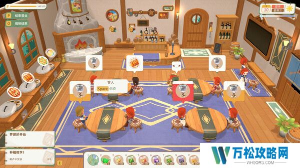 你需要亲自耕作、播种、浇水,种植制作餐点所需的作物;通过钓鱼和畜牧来获取肉类;还可以决定当天提供哪些餐点和饮品,并通过小游戏来完成这些餐点。一切准备就绪后,就可以敞开大门迎接客人了。