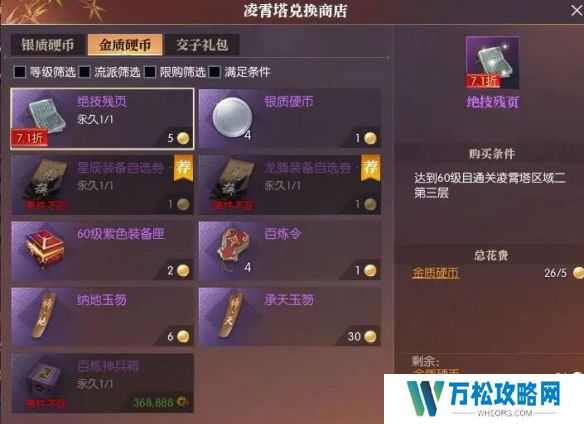 2、刷到后在【凌霄塔兑换商店】使用硬币购买1个;