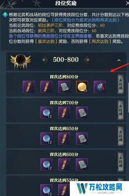 参与竞技排位,首次达到550-800分都会给一个【绝技残页】。