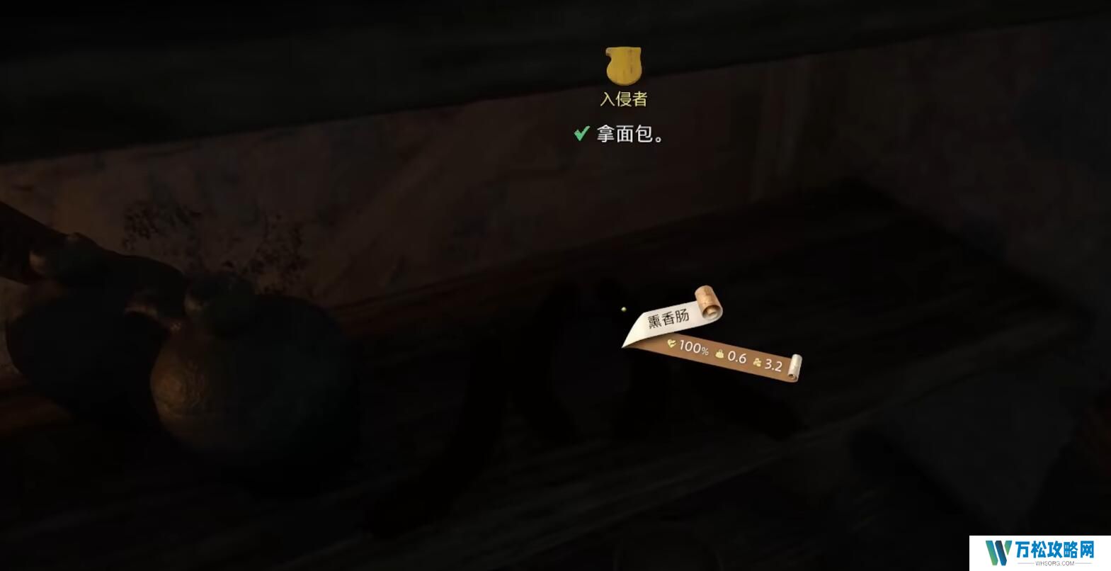 3、进去后开右上的门,在里面的架子上拿到面包;