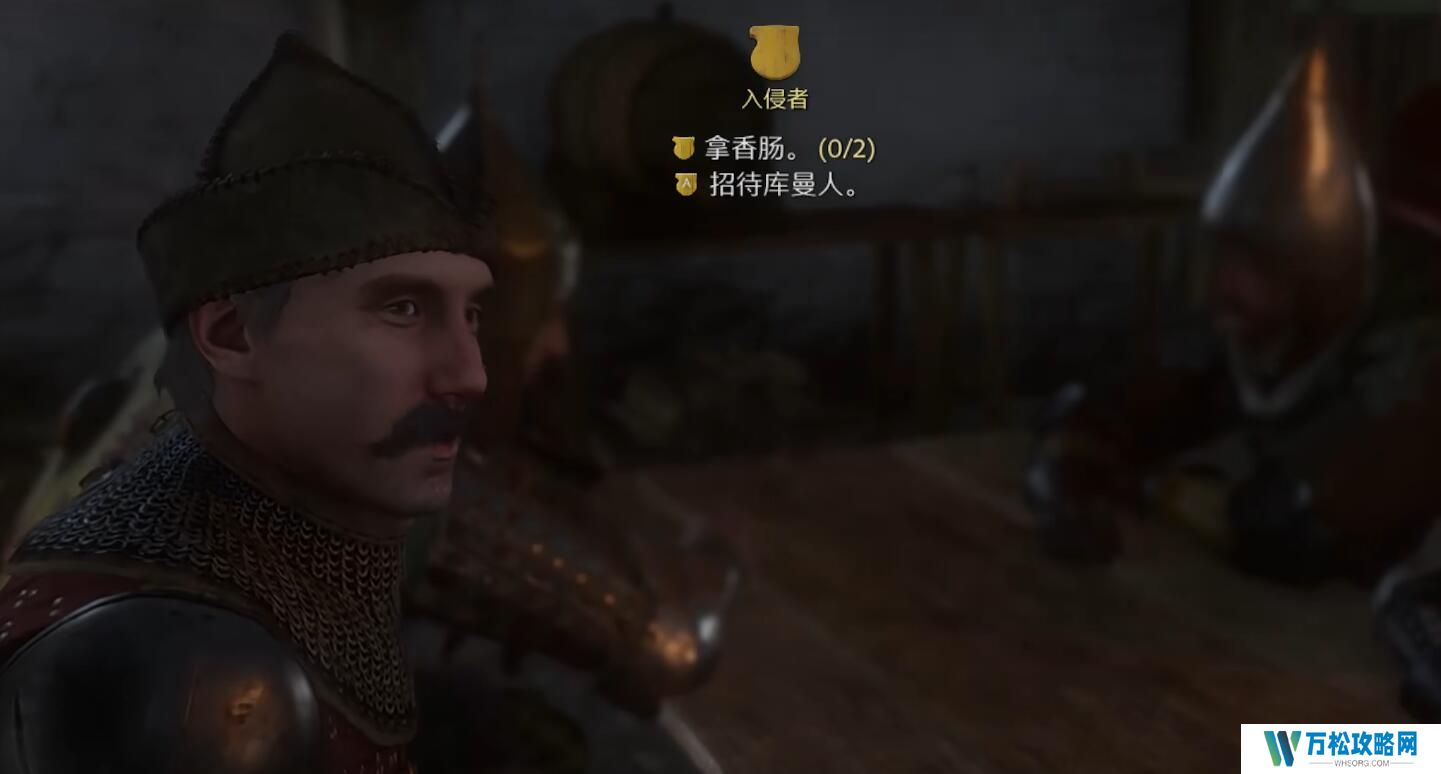 招待库曼人是入侵者任务中的小支线,很多玩家想知道招待库曼人任务怎么做,对话【瓦斯科】后进旁边的门,在里面的架子上拿到面包和熏香肠,然后出去对话老板即可完成任务,以下就是天国拯救2入侵者招待库曼人图文攻略。