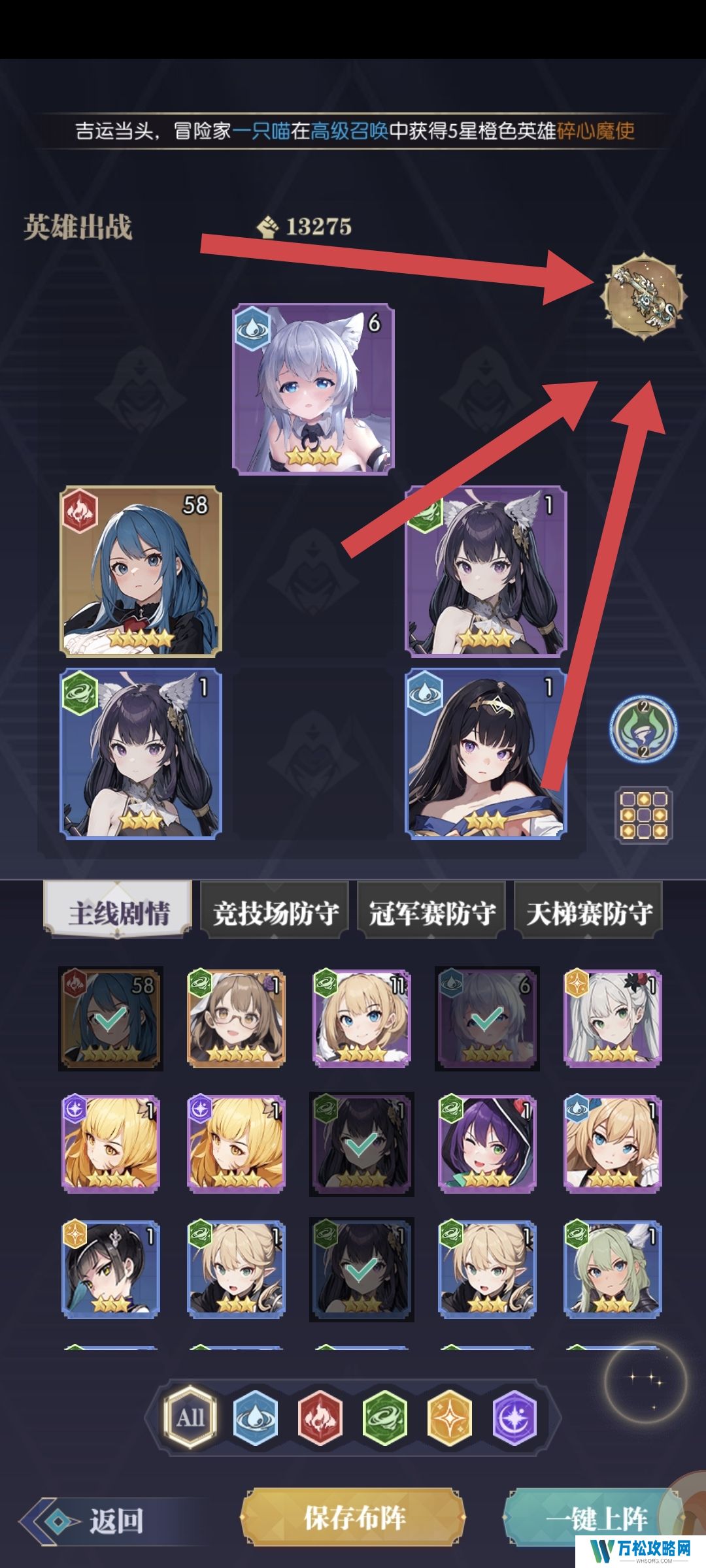 (十)最后点击右上角的按钮,选择神器装备