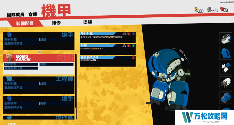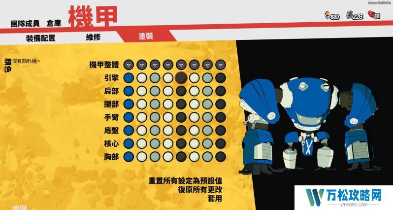 机甲的各个部件将提供不同的功能和能力值,除了在补给时升级装备、维修损坏部分,玩家还可以为机甲上色,打造自己喜欢的外观。