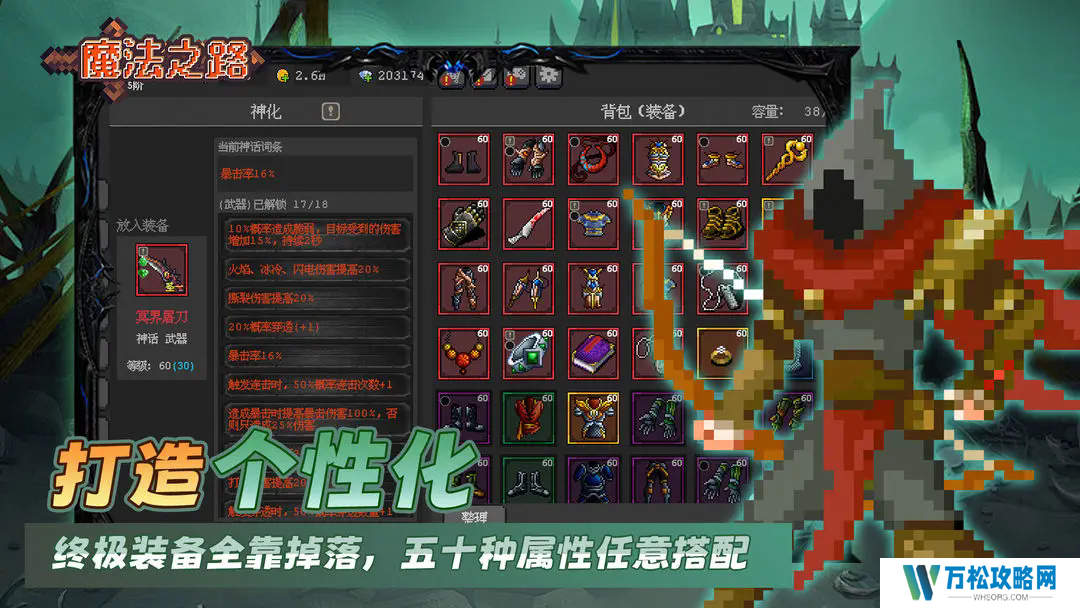千变词缀装备库:每件掉落装备自带3-6条随机属性,从"吸血暴击"到"元素连锁",200+词条组合创造无限可能