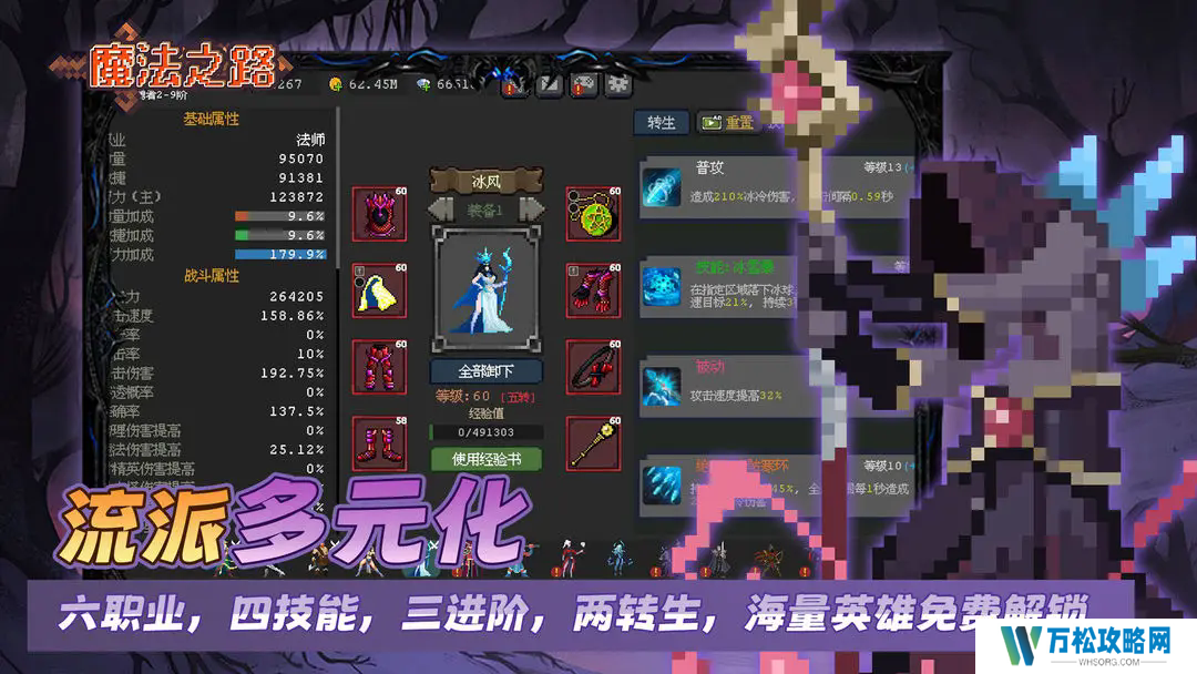 欢迎来到《魔法之路》,一款令人上瘾的暗黑像素风塔防游戏!在这个充满魔法与策略的世界中,玩家将化身为一名冒险者,召集不同职业的英雄,为英雄们打造强力装备,组合出强力的技能BD,抵御来势汹汹的怪物大军!