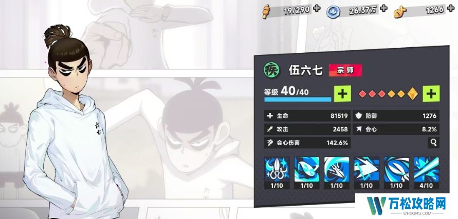 首先是伍六七这个角色,在游戏中有着出色的表现,特别是在竞技场环境中,他的优势很突出,其技能一具备直接封路的能力,一旦施展能够对敌方形成有效的阻碍,并且可以造成连续性的伤害,技能二则拥有无敌位移模式,这一特性使得伍六七在弹跳过程中也能灵活使用该技能,无论是躲避敌人的攻击还是调整自身位置都十分实用,而他的大招可直接造成横向伤害,在面对多个敌人时能发挥出强大的威慑力,此角色的所有技能配合起来,特别适合用来打竞技场,能够帮助玩家迅速拉开与敌方之间的距离,避免被敌人控制,从而在竞技场中占据主动地位。