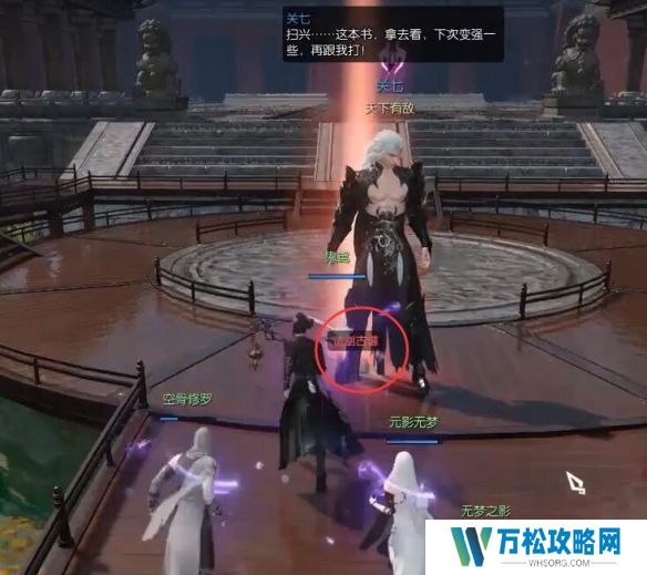 2、触发后边上出现NPC【关七】选择挑战他进入剧情场景;