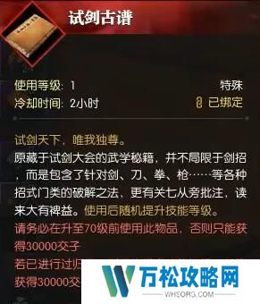 3、过去将他打败,NPC脚下会掉落一个道具【试剑古谱】捡起来;