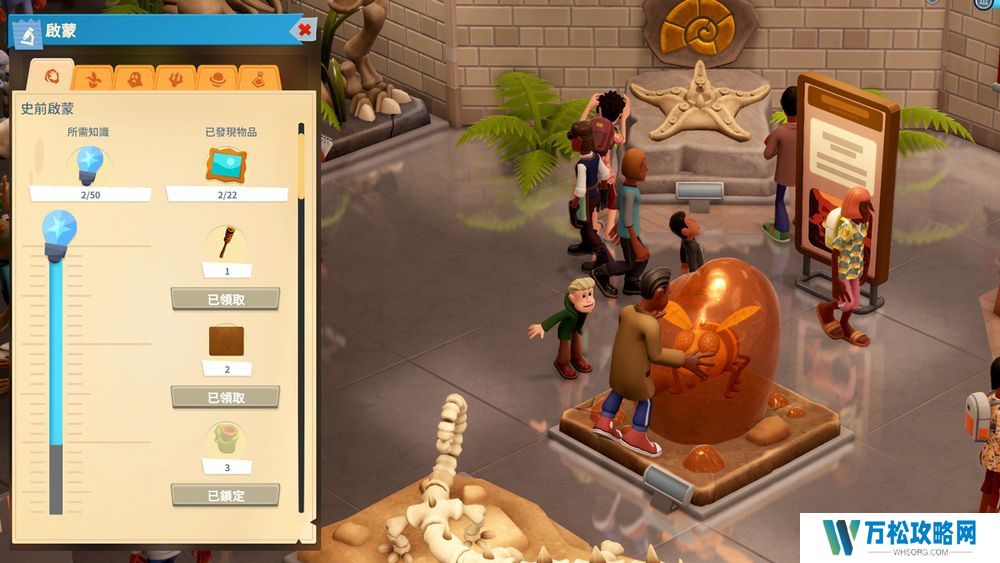 此外,展示品的分析功能同样值得关注。玩家可以通过分析展示品来获取知识、启发和特性。访客在博物馆内部无法获取额外的信息,因此,玩家需在“分析室”提取相关数据,以增加展示品的信息量,从而为访客提供更为丰富的知识体验。作为博物馆的馆长,玩家通过提升“启发等级”也可获得不错的奖励,解锁不同主题的装饰品或互动展示品。