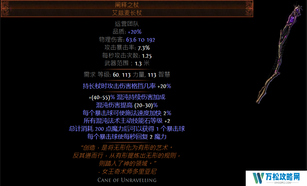 购买阐释之杖或灾害(买不起弓可选),混沌持续伤害加成尽量高一些,参考价2C