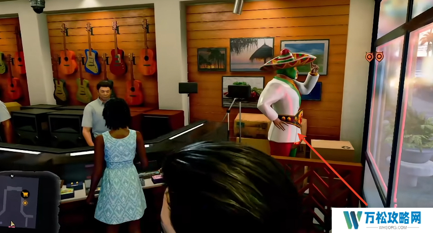 2、投射店门上边的位置,即可获得一颗金珠。