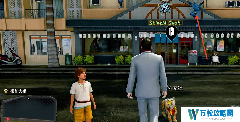 1、前往樱花大街,来到这个Shinobi Sushi门口。