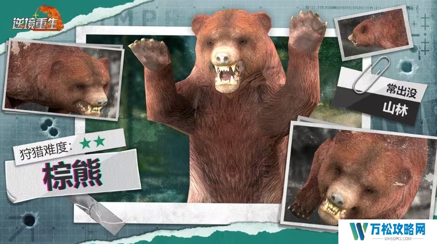棕熊是游戏中前期玩家面临的主要威胁之一,主要出没在山林区域,体型庞大,攻击性强,对新手玩家来说有一定的难度。然而,随着玩家实力的提升,棕熊逐渐从威胁转变为重要的资源来源。狩猎棕熊可以获得肉类和皮毛,前者是烹饪的重要食材,后者则可用于制作保暖衣物,帮助玩家抵御寒冷环境。