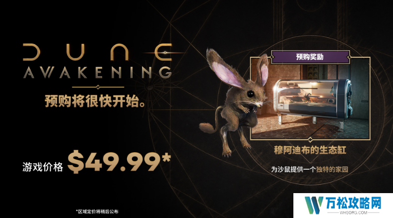 沙丘觉醒预购即将在steam商城开启,那么预购奖励是什么呢?预购奖励是一个穆阿迪布的生态缸,预购价格是49.99美元,感兴趣的玩家可以关注下这款游戏,等开放预购时去购买。