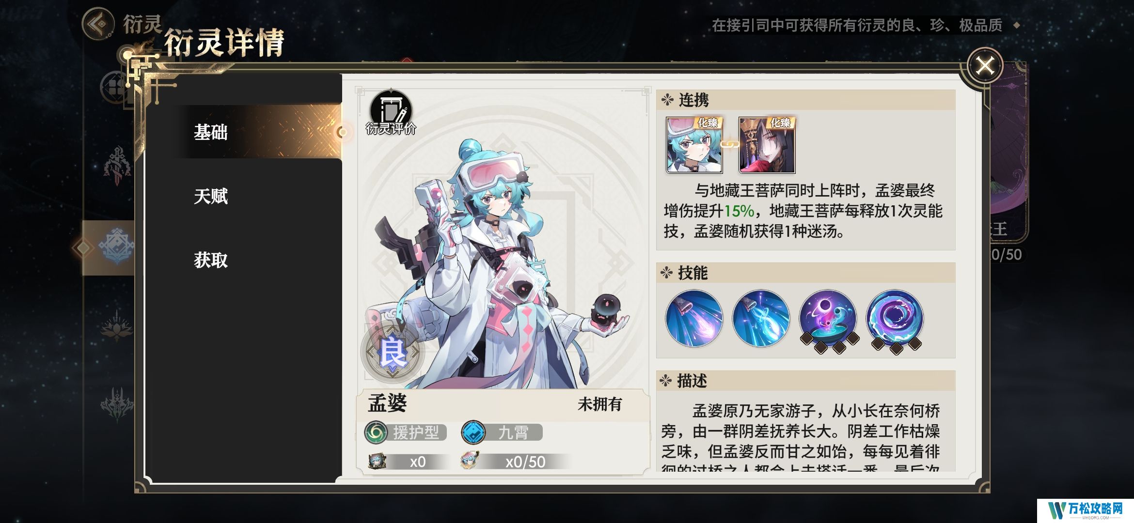 当友方单位死亡时,孟婆立即获得1点怒气,并提升自身15%治疗效果(持续2回合)。