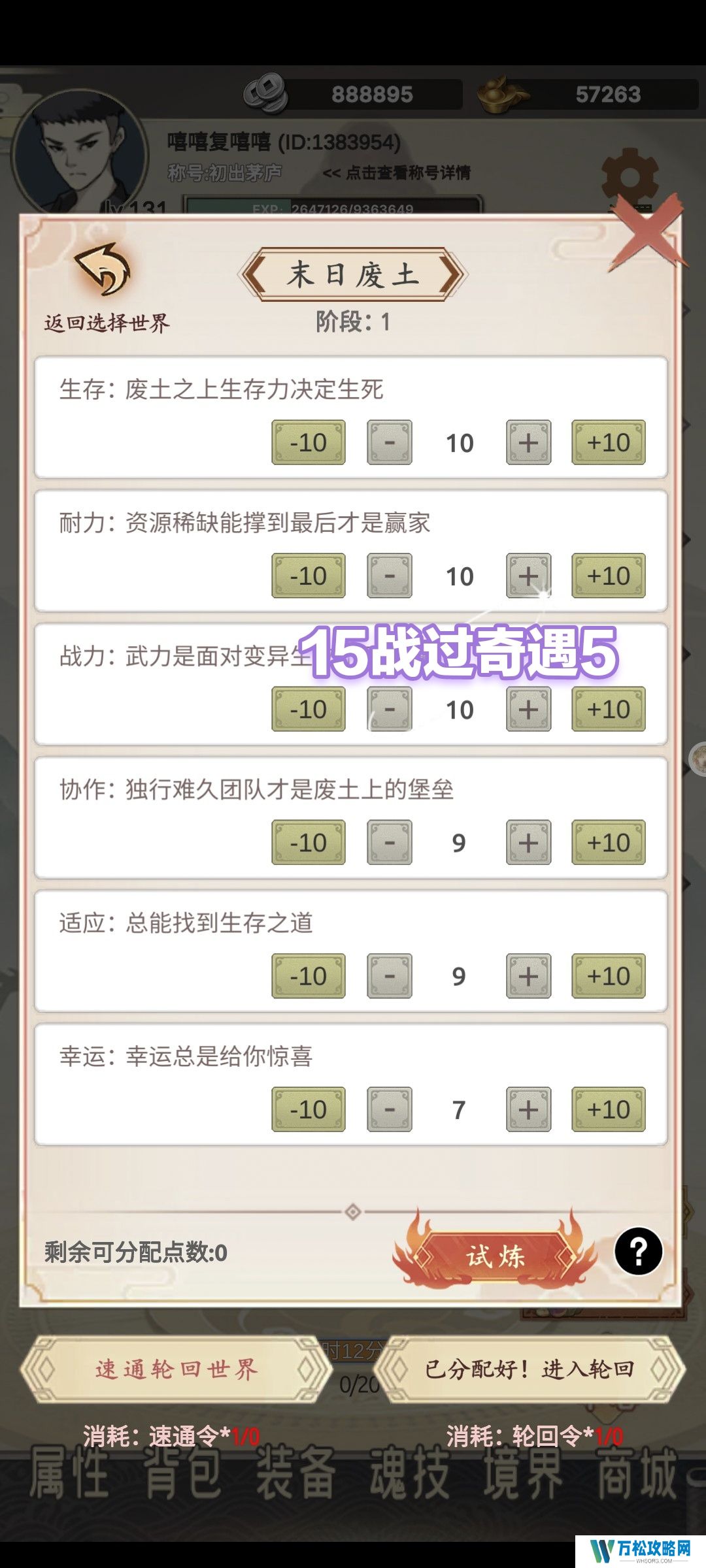 《穿越万世轮回》轮回世界二奇遇宝箱加点推荐