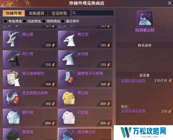 3、找到坐骑【琉羽乘云轩】,花费210个【珍稀外观兑换券】即可获得;