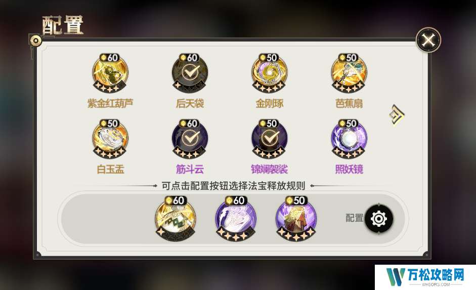 筋斗云能保证**王在首回合就能消去2层【誓愿】直接触发大招追击,加快输出频率。袈裟和瓶子都是进一步增强**王阵容的生存续航能力,如果没有杨柳净瓶的小伙伴可以用后天袋或金刚琢代替,后天袋/金刚琢提供的控制效果也相当于变相增加自身的生存。
