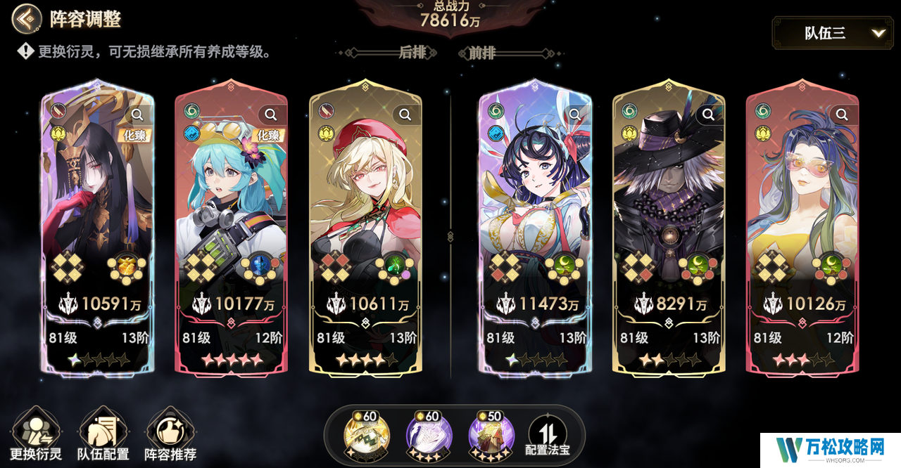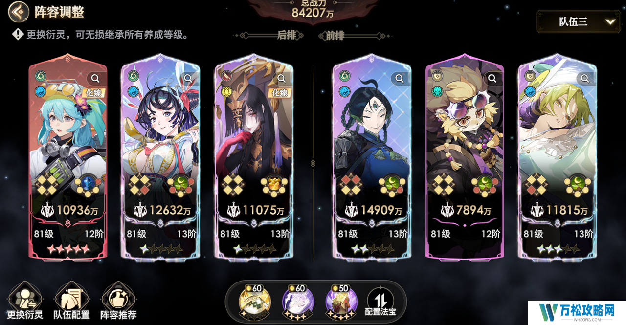 **王是一个输出能力非常充足的衍灵,只要保证他的生存能力和输出环境,她一个人的输出是完全足够的,不需要其他副C补充输出,所以五保一是最适合**王的体系,只要**王活着就能打出源源不断的大招。接下来就由小编给大家带来《少年西游记2》**王阵容推荐!