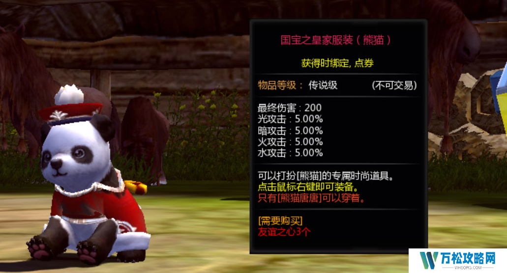 不止如此,熊猫糖糖的最高生命数值,可以提升5%,如果玩家想要升级熊猫糖糖,必须前往到NPC赛琳的位置,通过购买友谊之心的方式来兑换宠物饰品,宠物饰品数量越多,熊猫堂堂的等阶也会越高。