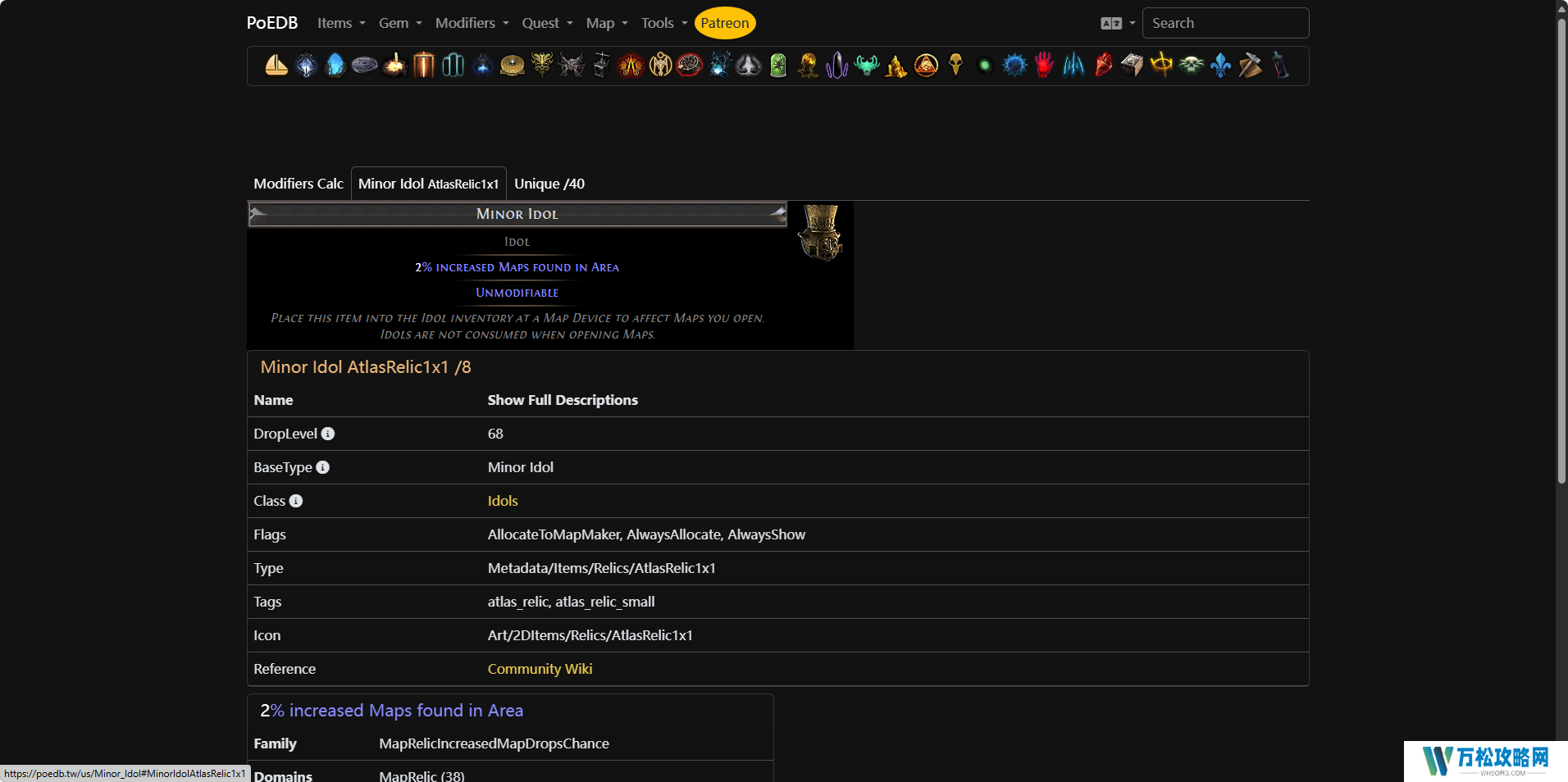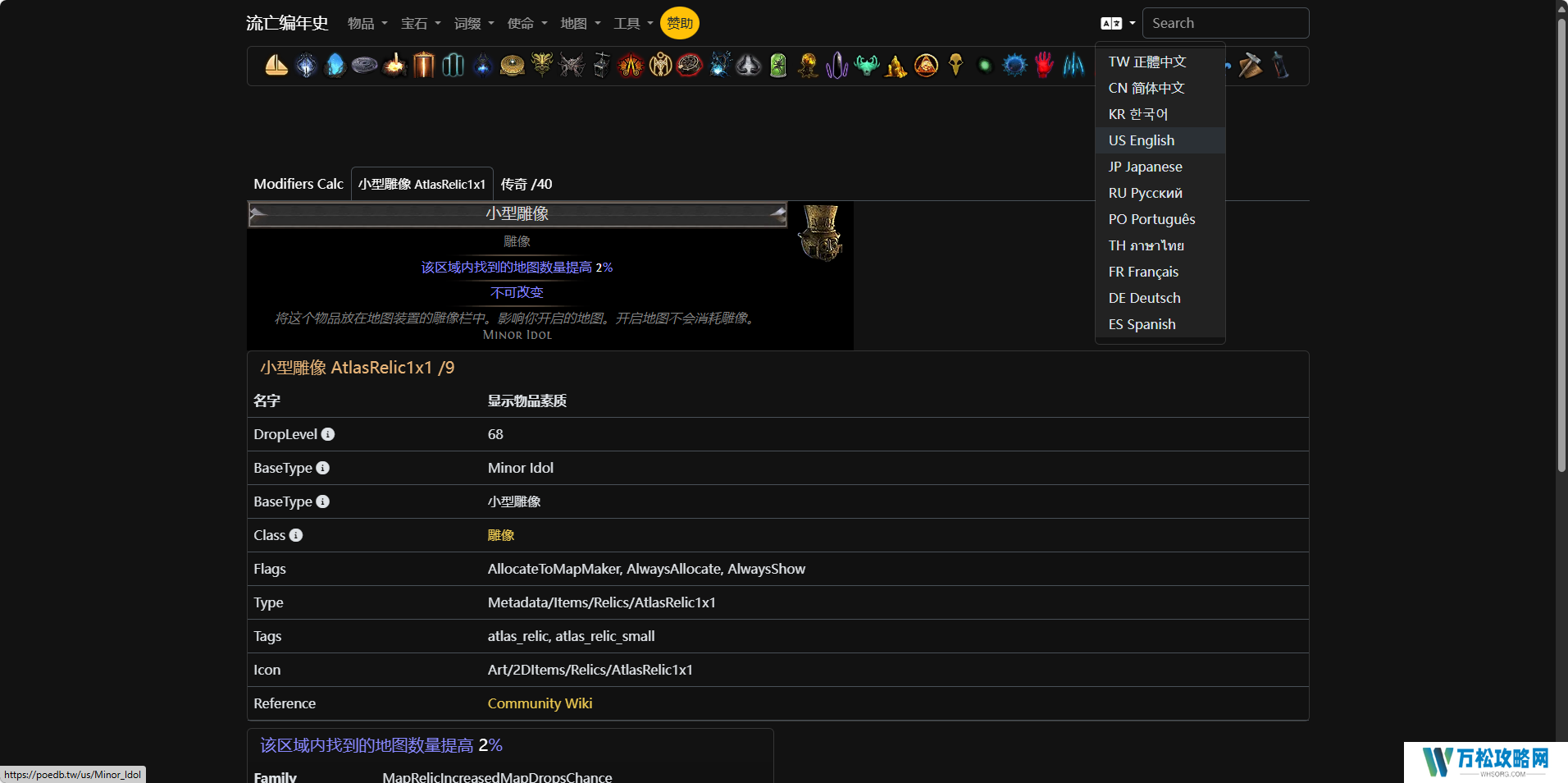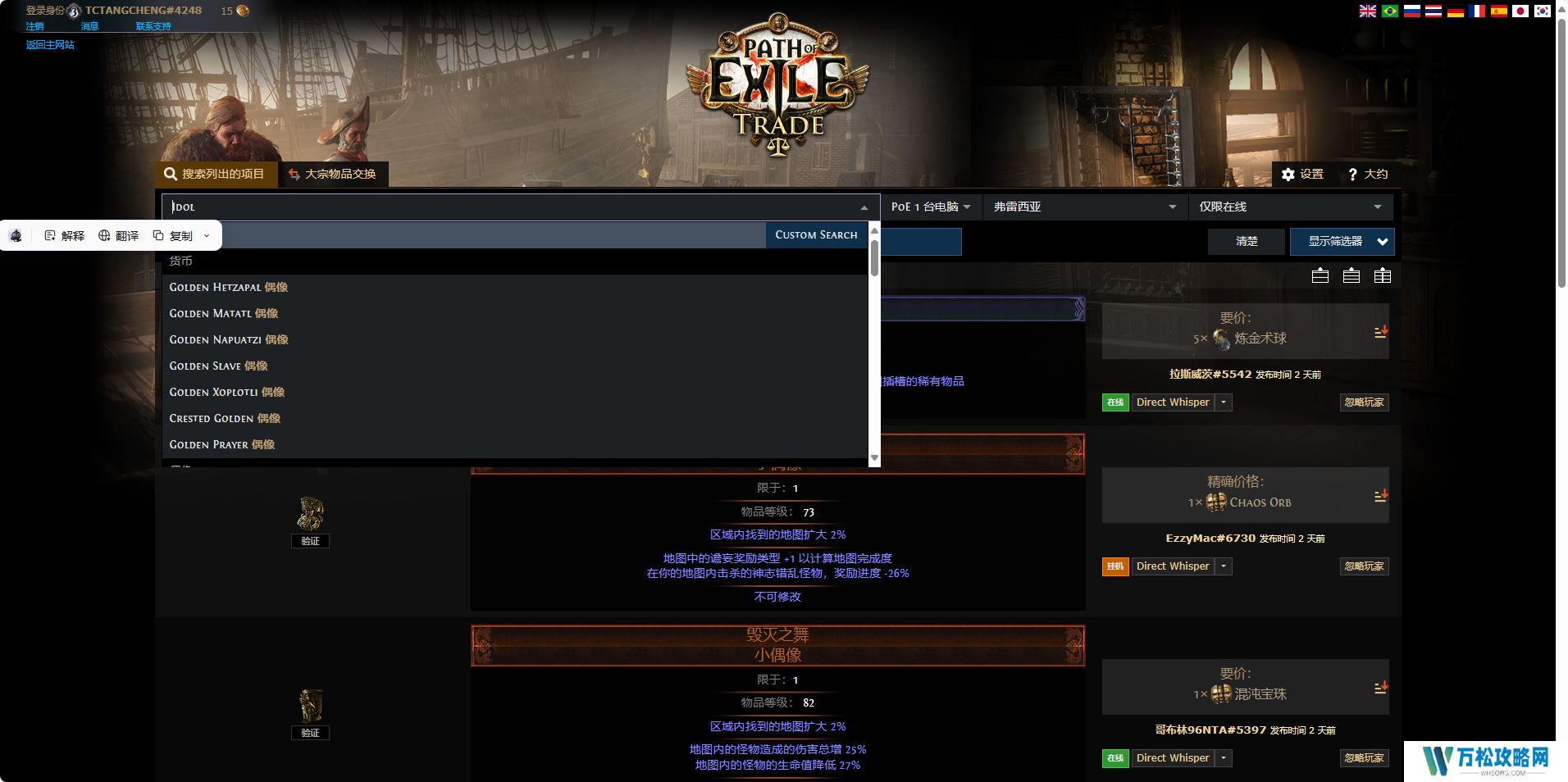 3、前往流放之路国际服的市集,在这里搜索Idol,下拉会出现很多的名称。