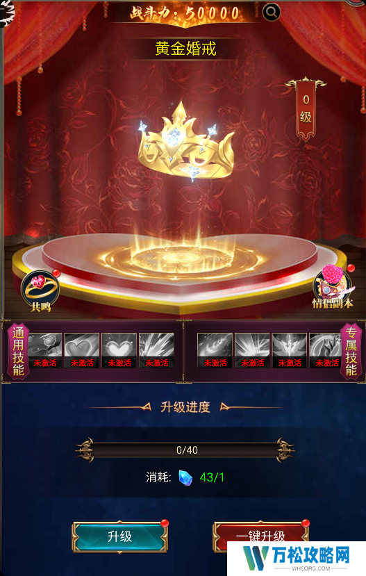 通过游戏主界面-更多-情侣进入。挑战情侣副本和提升好感等级可以获得婚戒进阶材料,满足一定等级即可激活戒指对应等级的技能。