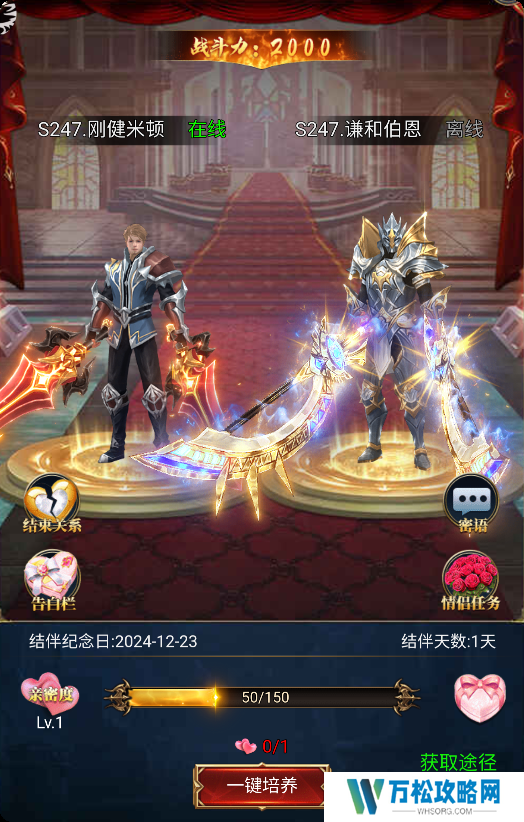 《封天战神》情侣玩法好感度提升方法