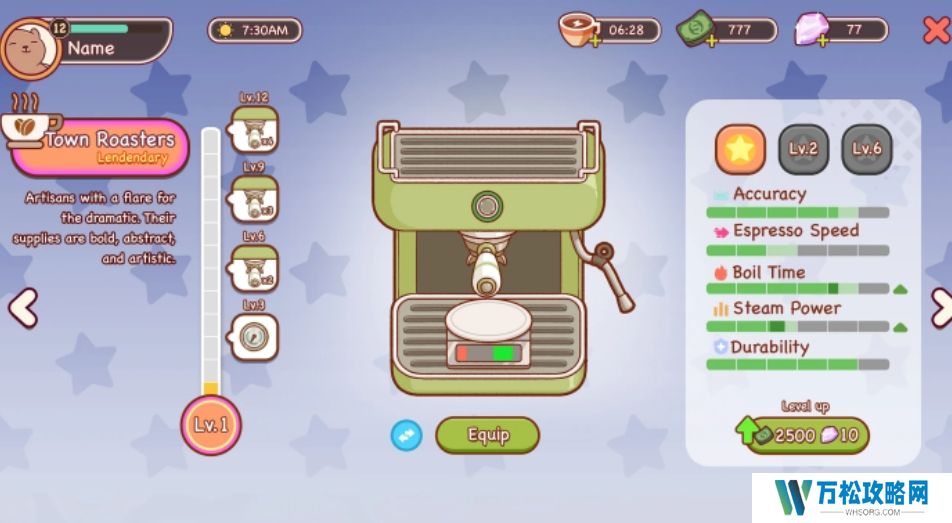 需要注意的是在咖啡机达到一定等级后再进行升级,就需要一些特殊材料和道具了。这些只能通过完成特殊任务、参与游戏活动或者用特殊道具购买才能获得。
