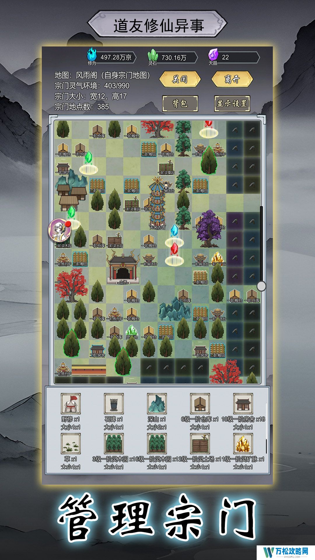 自由摆放与规划各种建筑(如法阵、灵田、锻造炉、灵树灵草等)