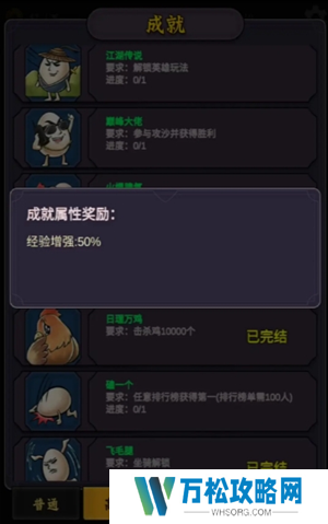 在成就中有一个高级成就,[日理万鸡,需要击杀鸡10000个],成就属性奖励为:[经验增强50%]。