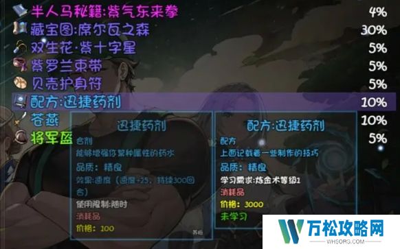 做好药水后交给德鲁伊便能完成任务,进入洞口后与右边的修女对话并接取任务,探索这个地图的时候大家还可以用之前获取的藏宝图去挖宝啦,挖宝的过程中有一定的概率会遇到宝箱怪,这种怪物的特点是血量厚,但伤害并不高,另外本层的BOSS露丝会掉落强势的秘籍,以及好用的药水配方,也就是迅捷药水,拳法要是大家需要的话也可以打boss获取,然后一些小怪资源这些都是做风车村任务所需要的重要物品哦,打败本层的守护者后就能在床这里获得一份魔兽秘籍。