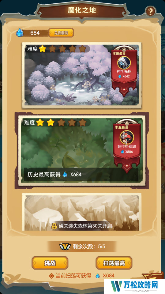 二、 每个灵石副本有5个难度,需要通关对应章节指定的关卡才能解锁难度。