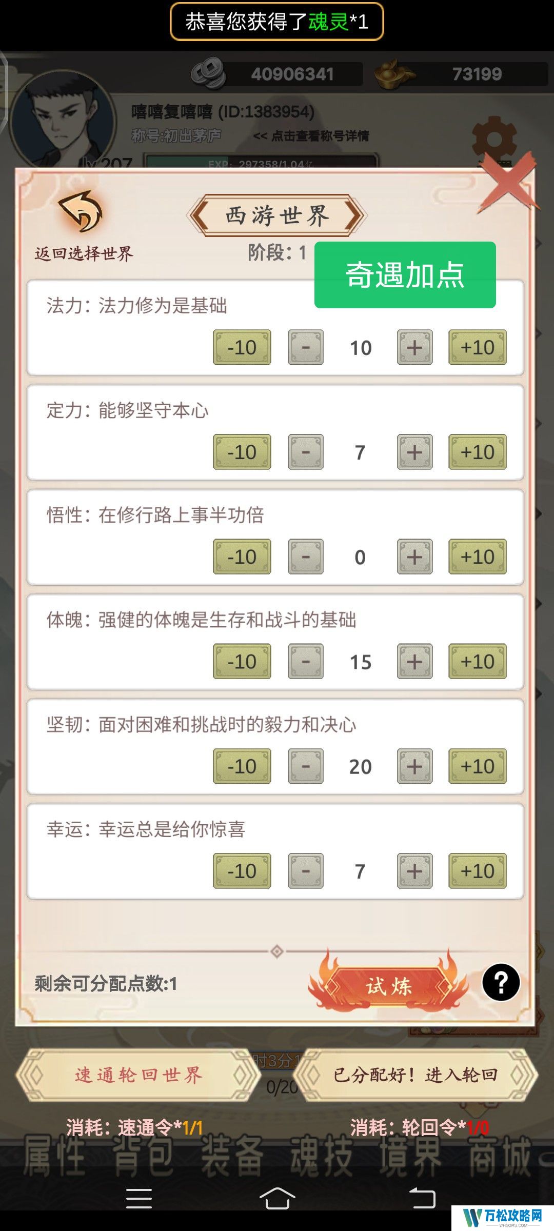 穿越到冥界,历经万世轮回,一世没有达到的目标,我再来一次!希望大家在穿越世界中畅享轮回万世的快感!下面是“星满楼-小冉”给大家带来的《穿越万世轮回》西游世界三加点推荐,感兴趣的小伙伴们一起来看看吧。