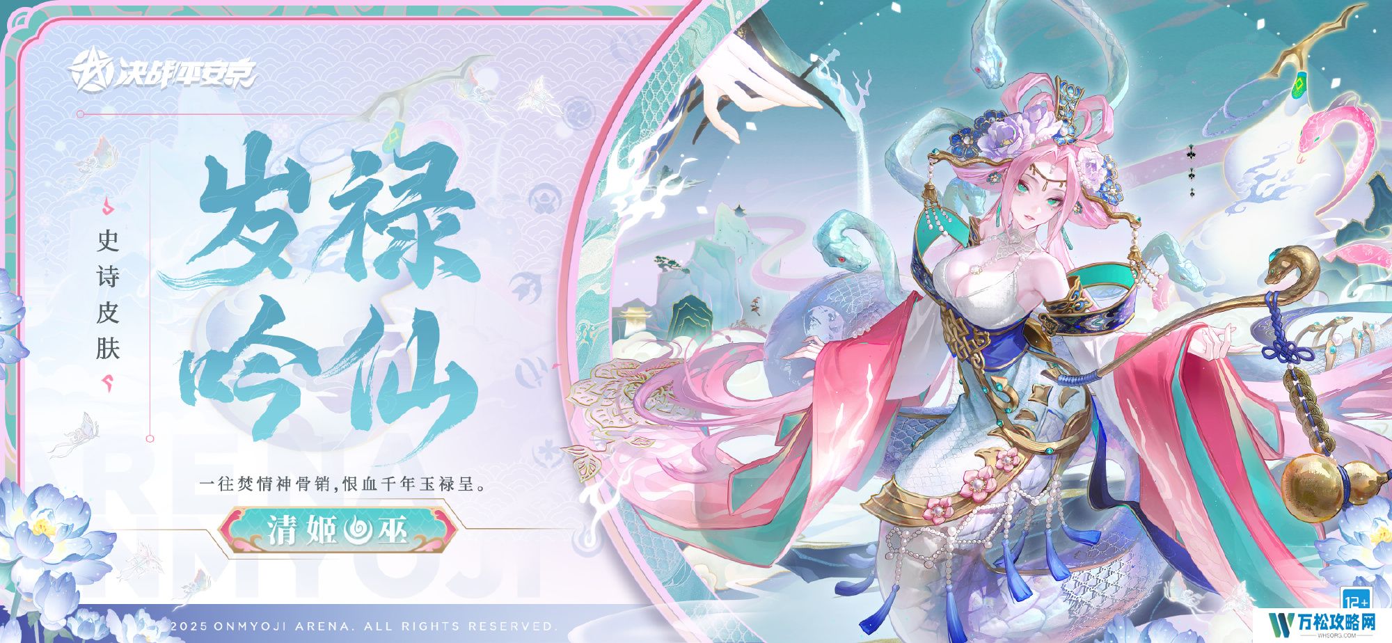 2月28日维护后-4月24日,清姬全新史诗皮肤「岁禄吟仙」将限时上架服装铺,售价96皮肤券,首周享限时8.8折优惠!
