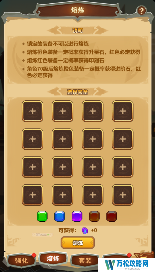 4、角色70级后熔炼橙色装备一定概率获得进阶石,红色必定获得