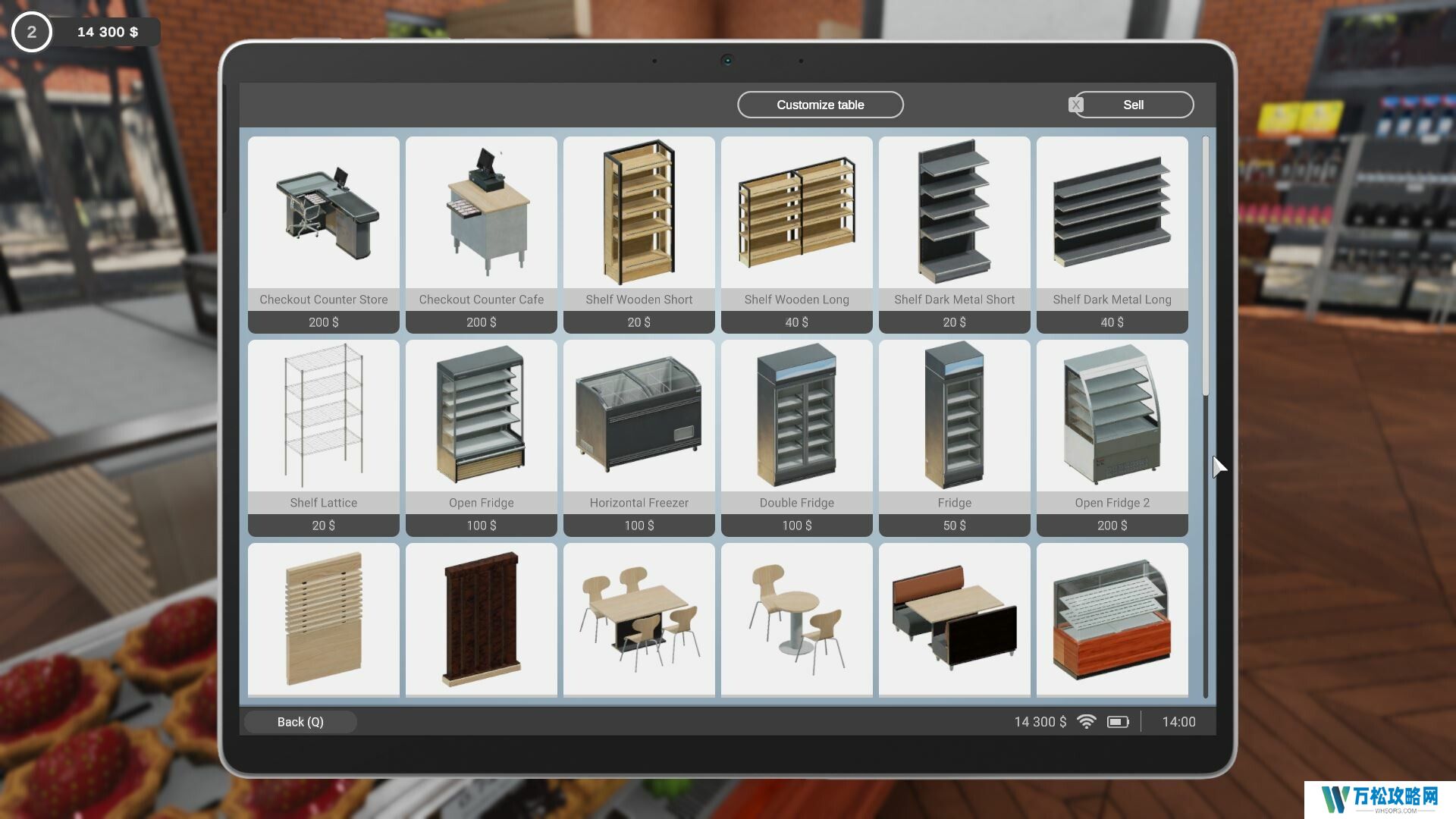 此外,这家咖啡店还附带一家超市,玩家也需要对超市进行经营管理。玩家要设置货架和冰箱,可以根据情况自由设定价格,直到找出最合适的价格,准备好购物篮和购物车,并且要经营数百种商品。