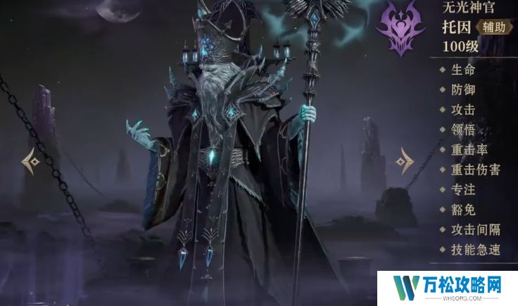 无光神官:这位是当前版本里最近非常热门的一位奶妈,尤其是在一些高难本之中发挥的作用非常高,首先介绍他的队长技,他的队长技是增加队伍中队友50点豁免,豁免对于很多成功率的技能来讲还是有很大影响力的,他的被动则是一个标记,我们在战斗开始的时候可以对我方前面的一个队友进行标记,标记之后的队友可以获取到神官25%的生命上限和防御,并且同时还可以获取到隐身的能力。