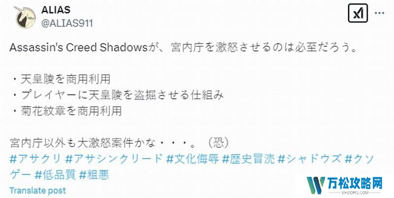 育碧即将推出的《刺客信条:影》再度引发争议! 近日,日本玩家ALIAS(@ALIAS911)在社交平台X(前推特)发文,强烈批评游戏中的某些剧情设定,指控其「文化侮辱」甚至「历史亵渎」,引发当地玩